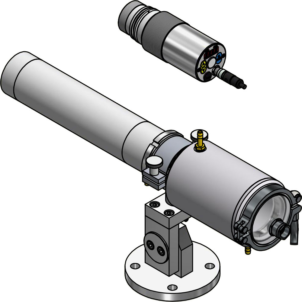 Pyrometer mit fokussierbarer Optik im Edelstahlgehäuse zur Messung von Metallen bei niedrigen Temperaturen mit speziellem Sperrfilter zur Blockung von Störstrahlung